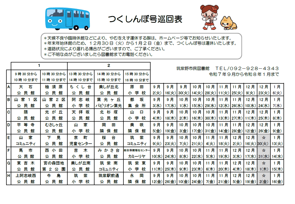 ☆印のある日は休館のため運休します。 ※天候不良などにより、やむをえず臨時運休することがあります。